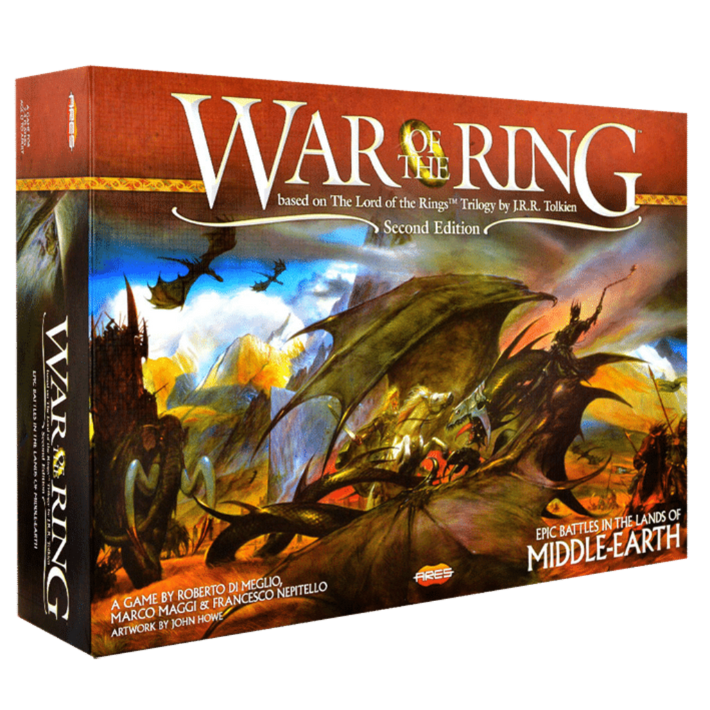 2. We review War of the Ring: Second Edition published by Ares Games. War of the Ring is a two player, epic game that lets players recreate the main events in the lord of the rings series. War of the Ring is a 2 to 4 player area of control and hidden movement game that takes about 2 hours to play. War of the Ring captures the epic battles.
